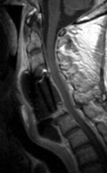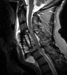 outside of the C7 vertebral body. Also, there is T2 hyperintense fluid