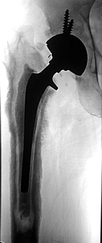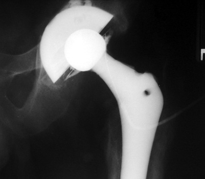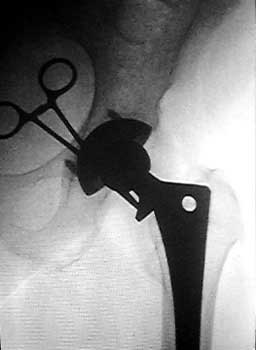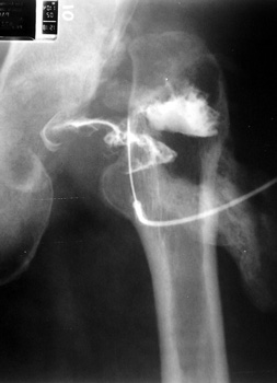 Aspiration of hip after removal of prosthesis. Needle placed