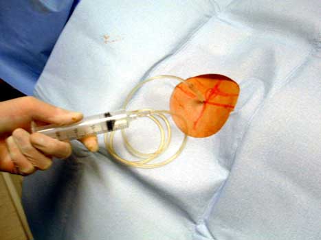prosthesis, so the tip can be as inferior as possible, where more fluid