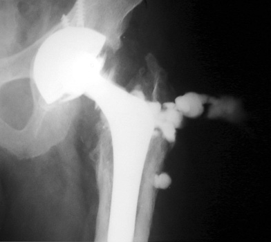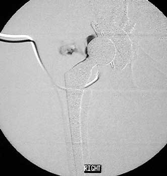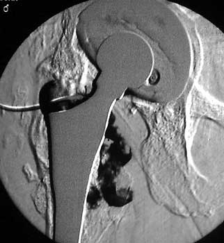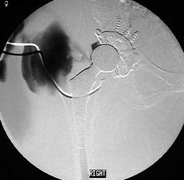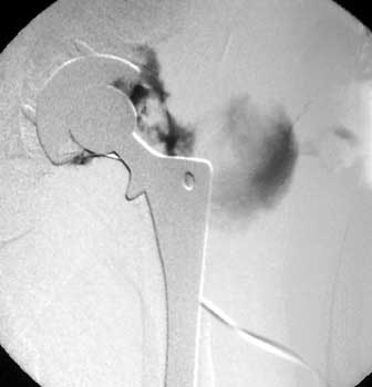 Arthrographic evidence of looseningcontrast enters