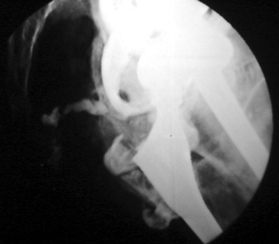 - Contrast aspirated and sent for cultures labeled hip wash.