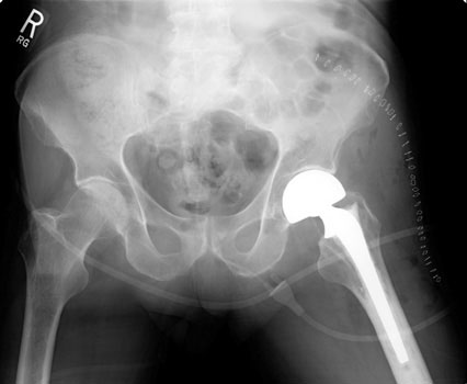 Immediate post operative radiographs after left bipolar hemiarthroplasty (A) and right total hip arthroplasty (B).