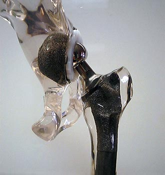 Porous coated acetabular cup and proximal femoral components,