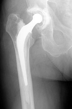 over time, thus hybrid total hip replacement (cementless acetabular component